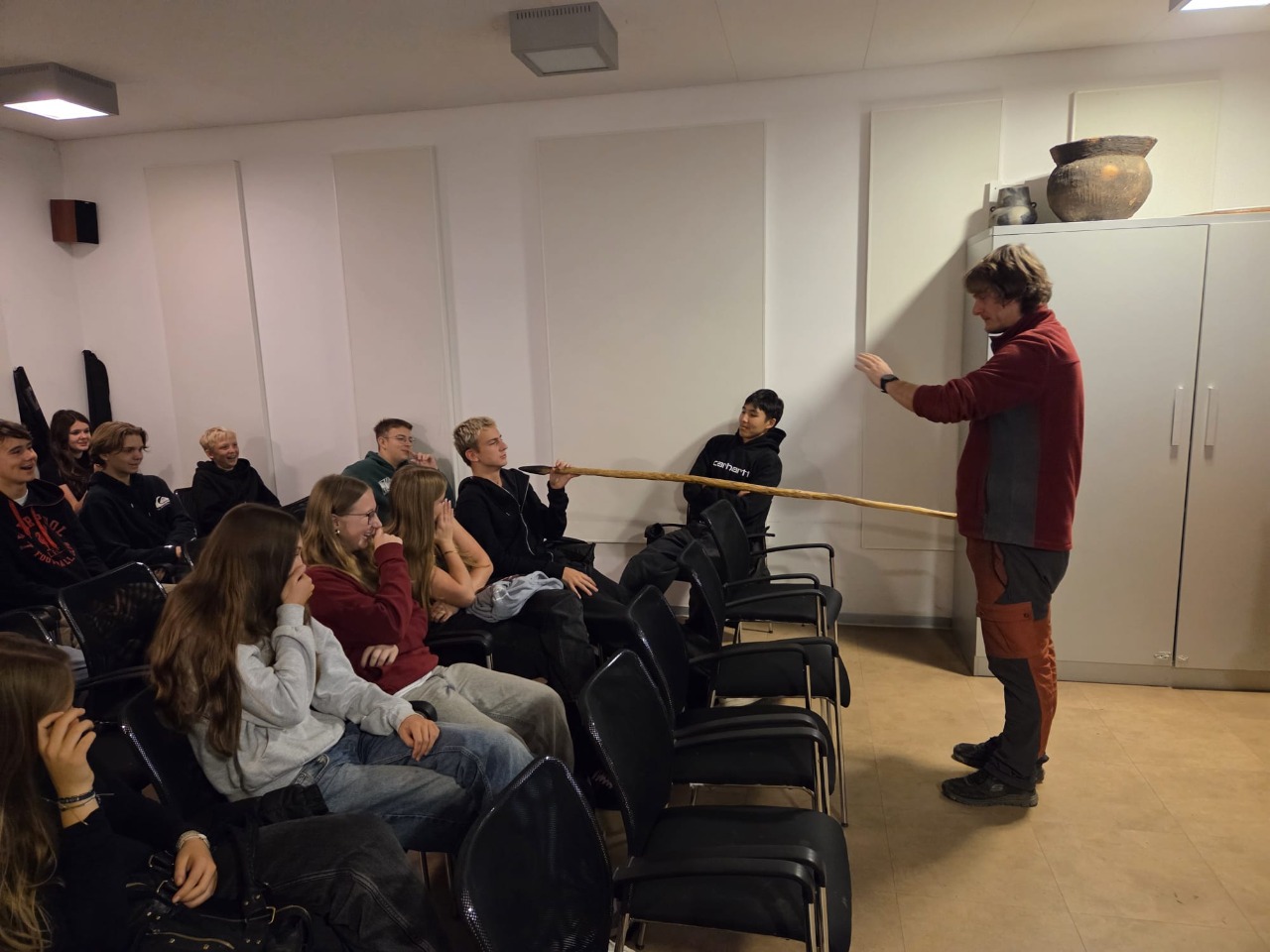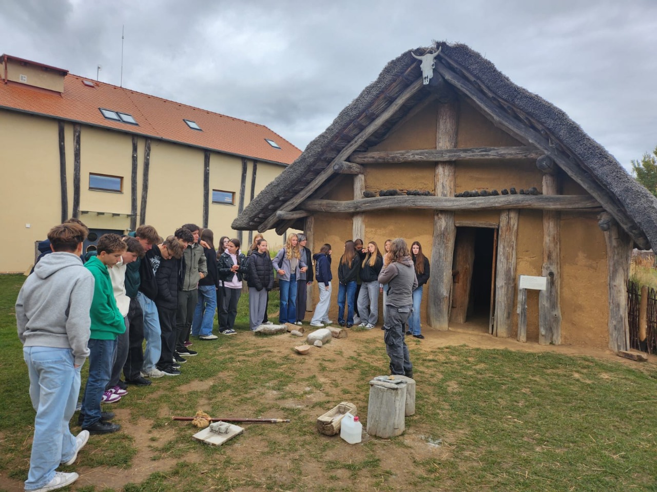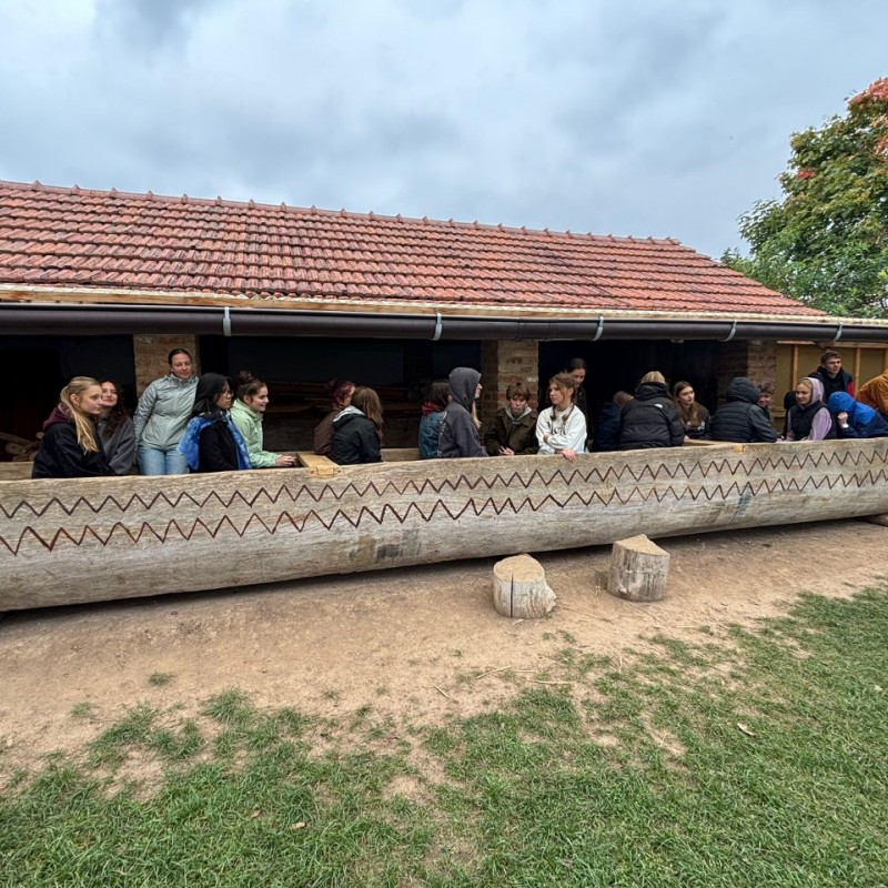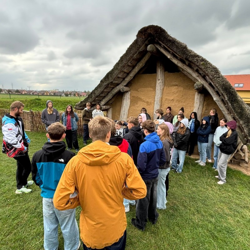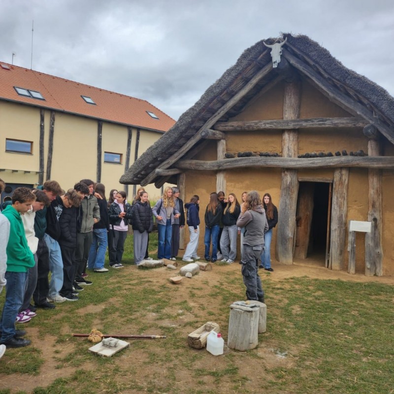 Třídy 1.A,B a 5.E,F našeho gymnázia navštívily v říjnu Archeopark pravěku ve Všestarech, kde si studenti prohlédli ukázky života v pravěku. Během programu se seznámili s podobou tehdejších obydlí, způsobem každodenního života i s nástroji, které lidé v dávných dobách používali. Součástí exkurze byly také praktické aktivity, díky nimž si studenti mohli vyzkoušet některé pravěké činnosti a lépe pochopit, jak náročný byl tehdejší způsob života. Návštěva byla pro všechny nejen zajímavým doplněním výuky, ale také příjemně stráveným dnem mimo školní lavice.