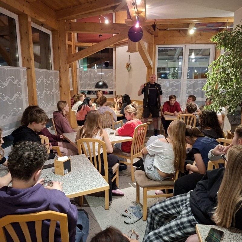 Po návratu ze svahu následoval večerní program, který kombinoval zábavné i vzdělávací aktivity.