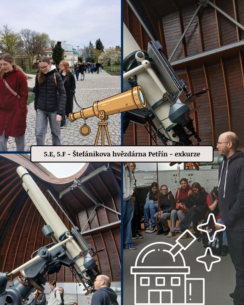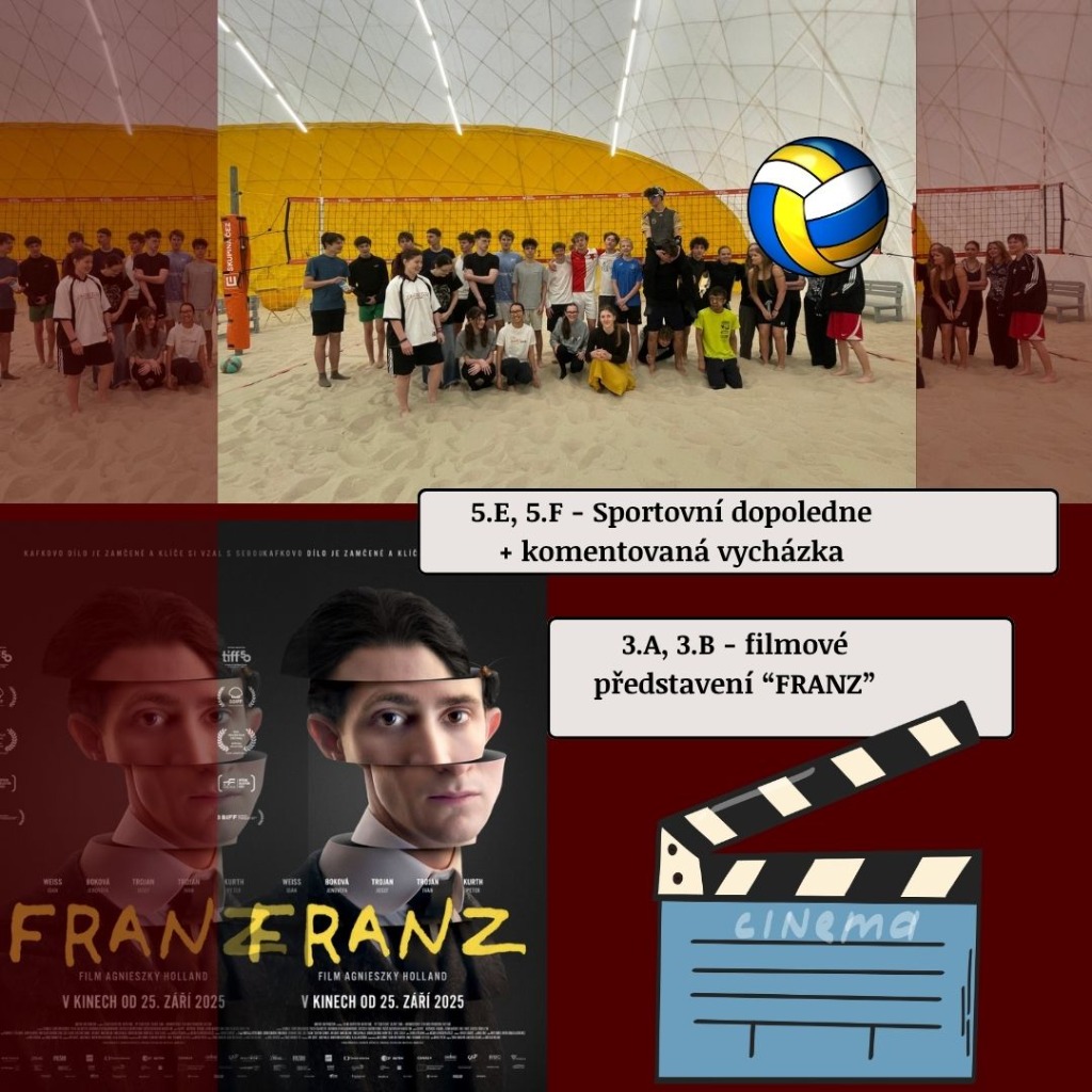 14. 4. a 15. 4,  2026 - zatímco vyšší gymnázium si užívá 2 dny studijního volna, třídy nižšího gymnázia vyrazily na různé exkurze, výlety, přednášky a představení. Podívejte si, kde všude naši studenti byli.